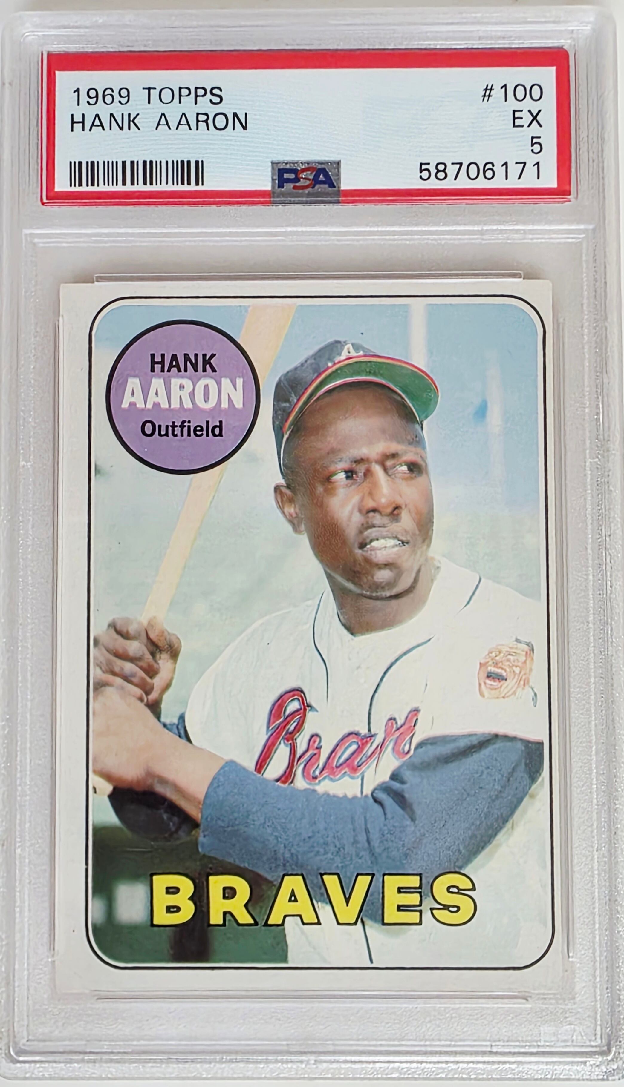 PSA 5 ハンク・アーロンは、日本の野球界と深いつながりを持っており、特に伝説的なスラッガー・王貞治との関係が知られています。1974年、東京の後楽園球場で行われたホームラン競争では、アーロンが10対9で僅差の勝利を収めました。二人の友情は長期的な協力関係へと発展し、共に「ワールド・チルドレンズ・ベースボール・フェア」を設立し、日米をはじめとする世界の青少年に野球と文化交流の機会を提供しています。