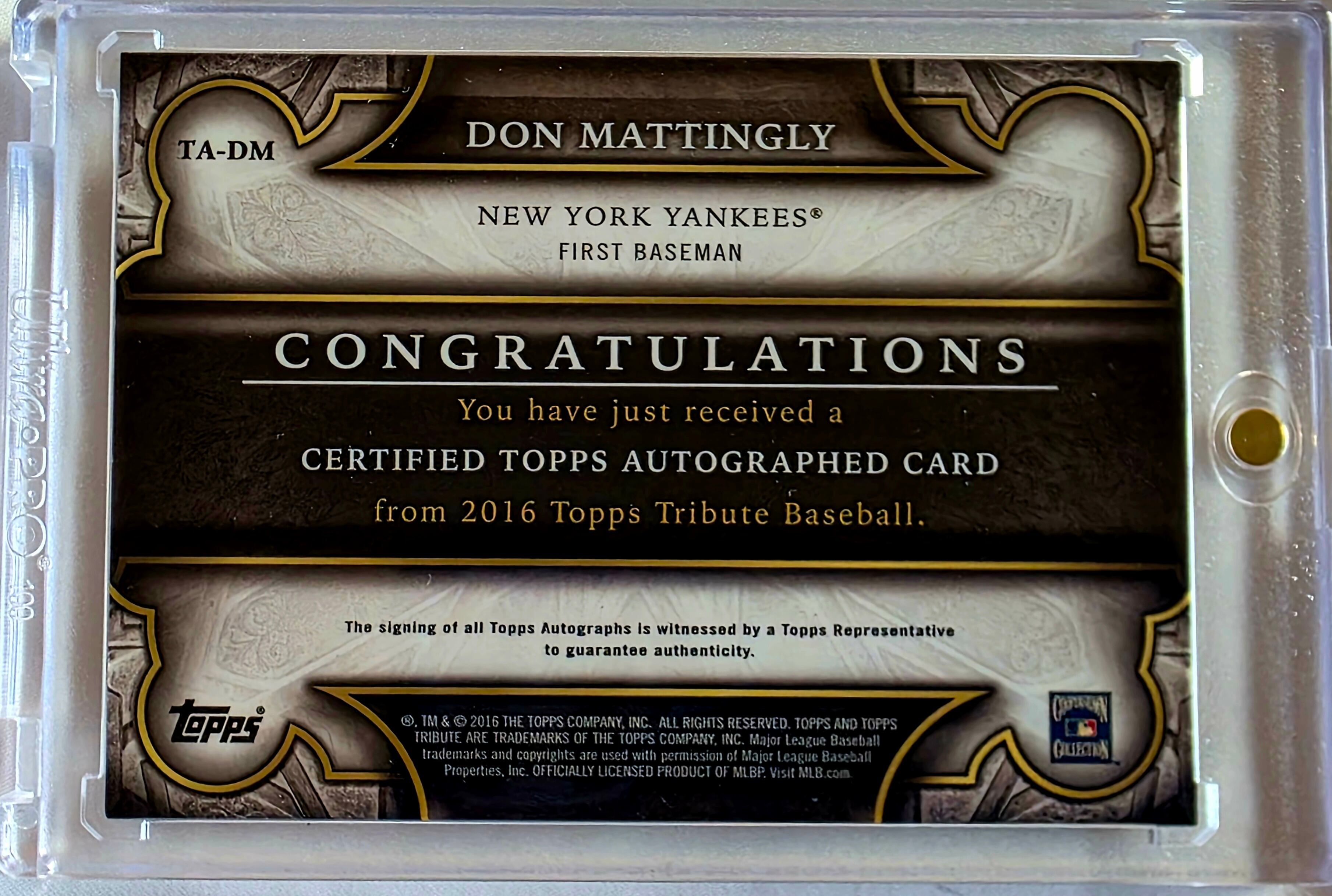 Don Mattingly 2016 Topps Autograph Card
