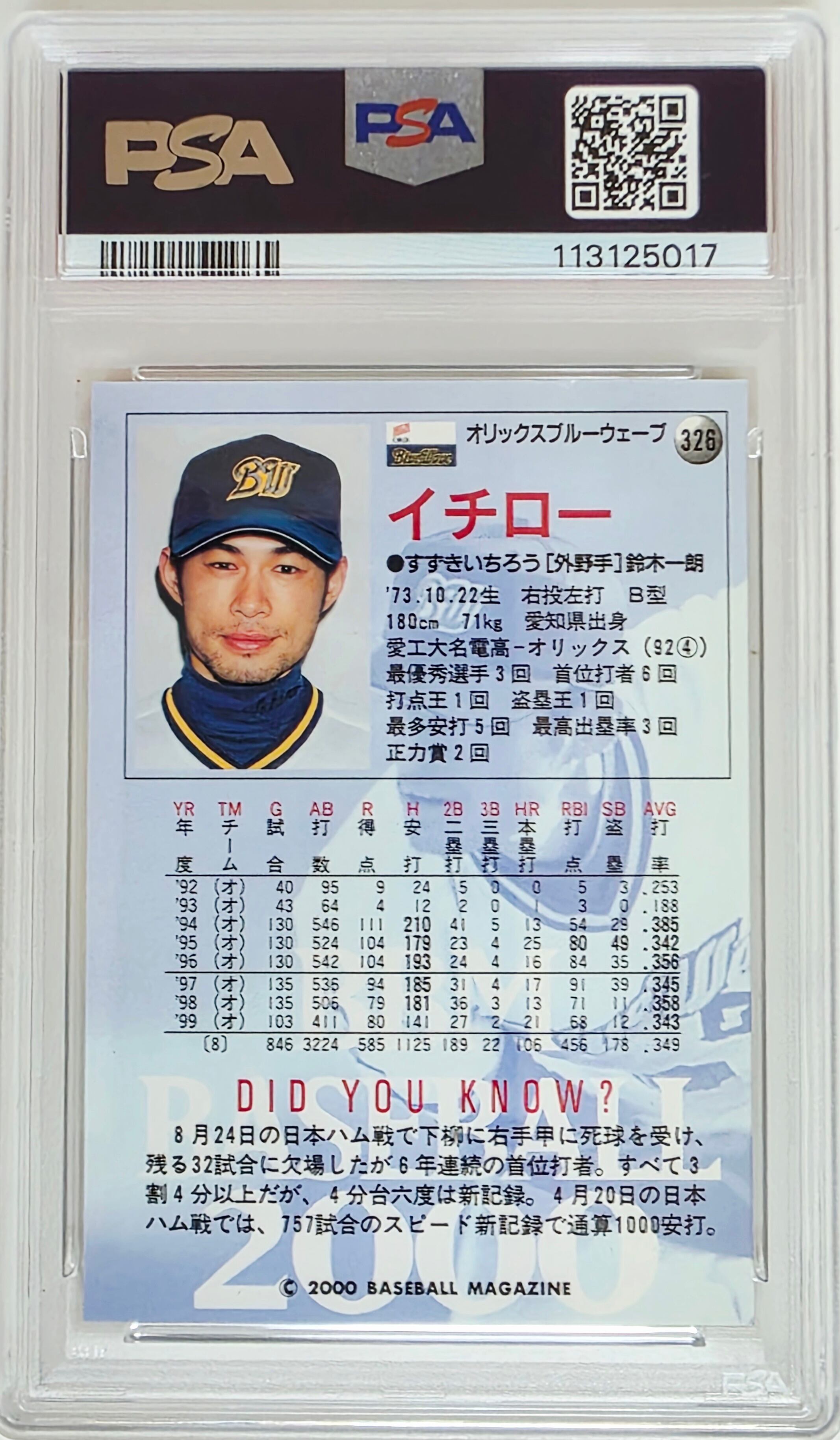 Ichiro Suzuki 2000 BBM PSA 7 #326