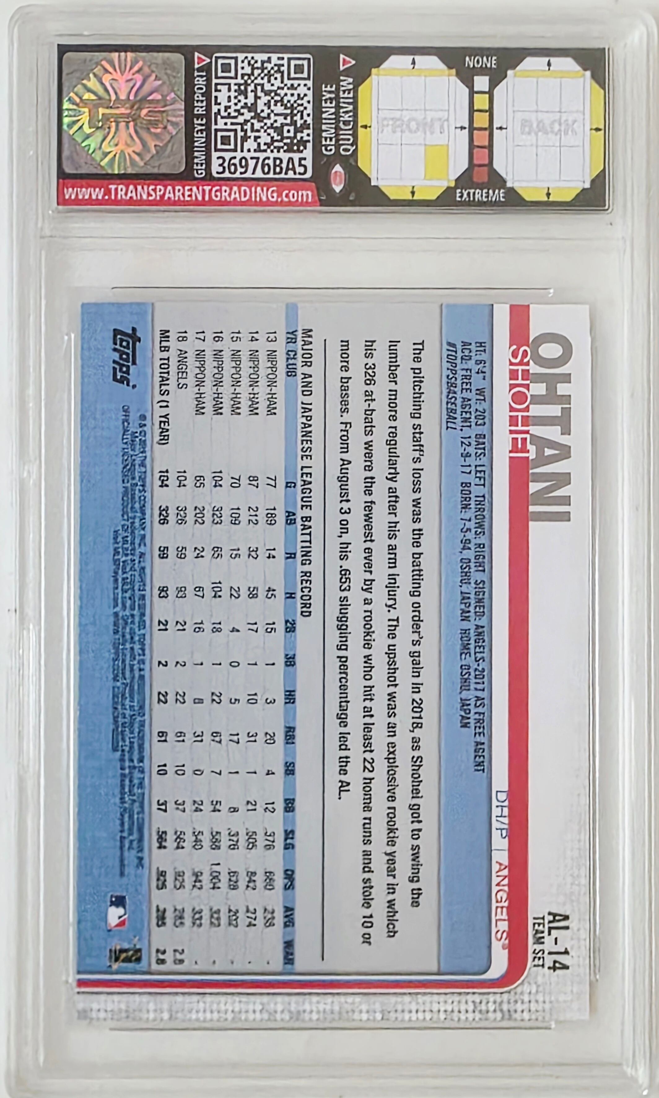 2019年の大谷翔平 #250 TPG 9.5 Gem Mintカードで、二刀流の輝きを手に入れよう。打率.286、18本塁打、62打点、106試合で110安打—トミー・ジョン手術からの復帰にもかかわらず、圧巻のパフォーマンスを披露。左打席での美しいスイングを捉えたこの一枚は、MLBと日本の誇りをつなぐ象徴的な瞬間。Gem Mint評価9.5の高グレードで、状態・希少性・歴史的価値を兼ね備えた逸品です。大谷ファンはもちろん、国境を越えたコレクターにもおすすめ。在庫は1点限り—売り切れ次第終了です。今すぐラインナップに加えて、“Shotime”の伝説をあなたのコレクションに。