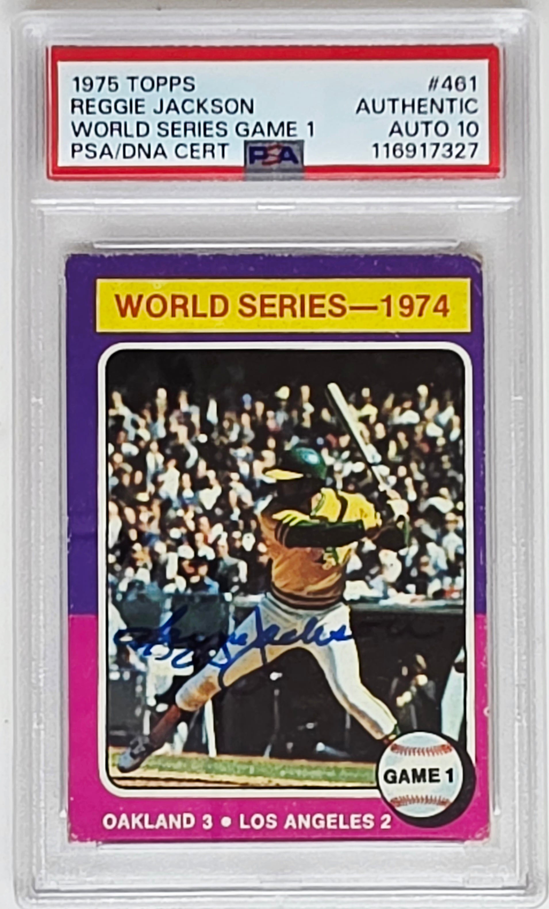 RARE Vintage - 1975年のワールドシリーズでのレジー・ジャクソンのサイン入りカード、オート10、ゲーム1の記念品。