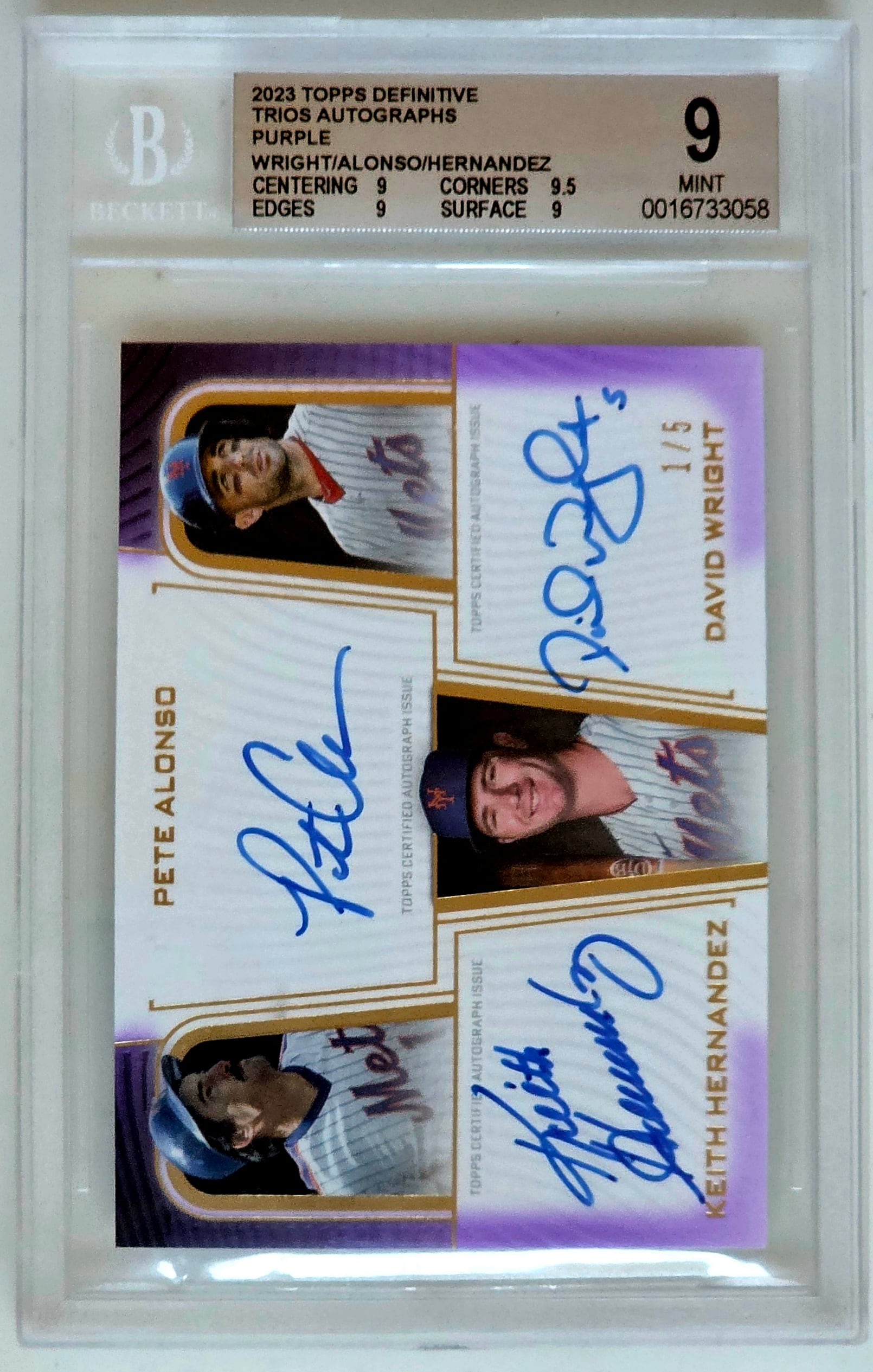 2023 Topps Definitive Trios Autograph Card — Wright / Alonso / Hernandez(1/5、BGS 9 Mint)