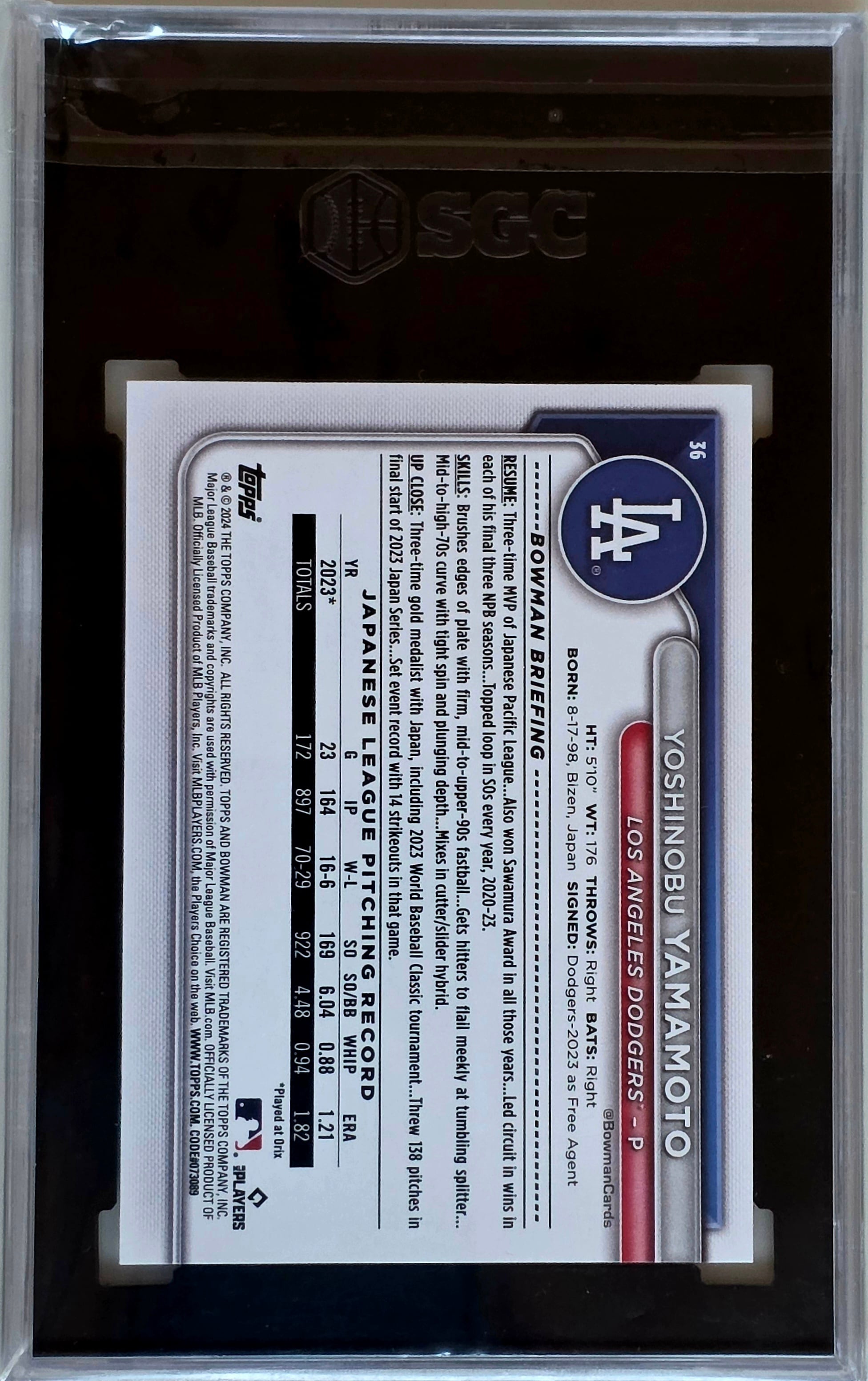 2024 Bowman 山本由伸 RC(SGC 10 GEM MINT)