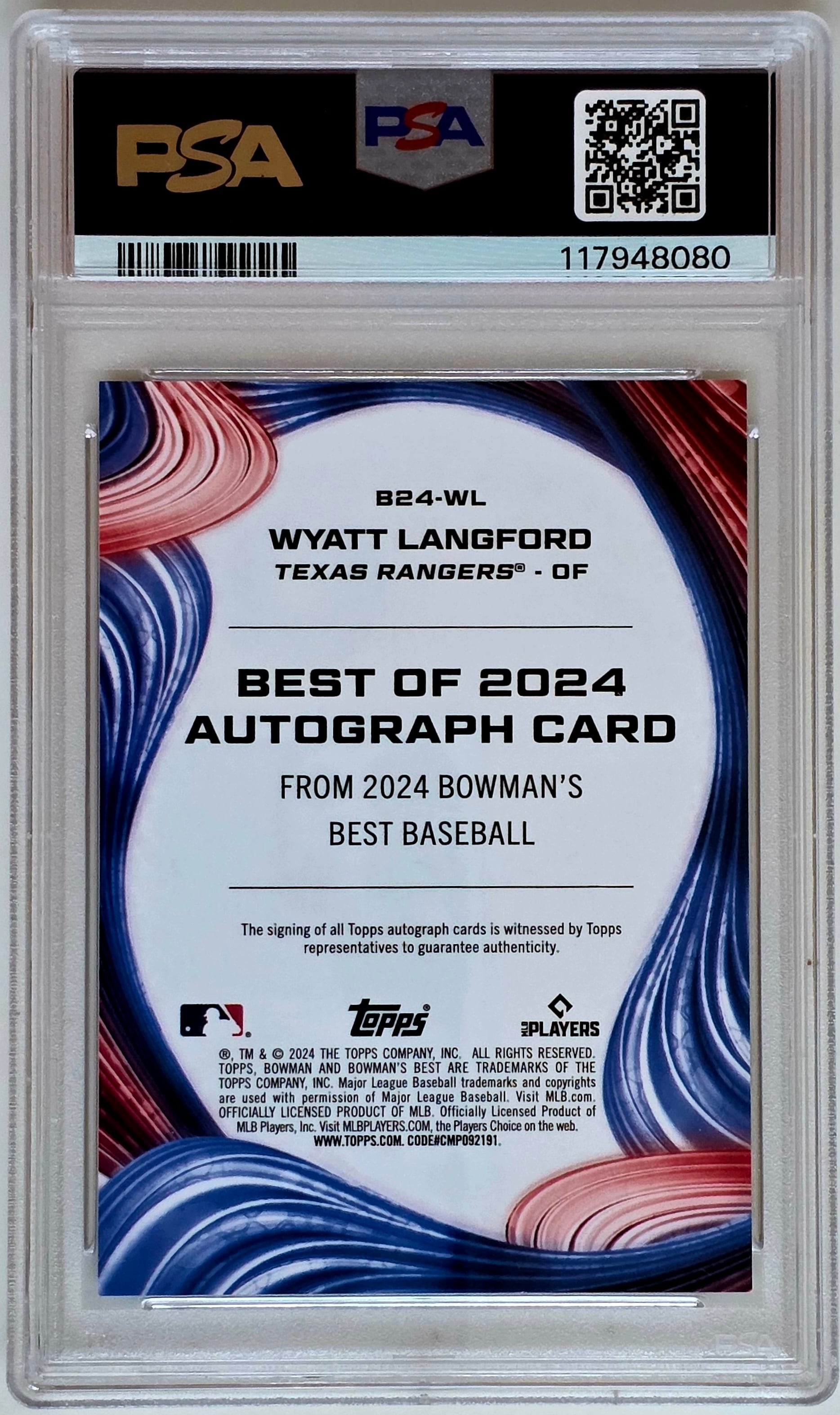 2024 Bowman’s Best の代表的なルーキーオートで、将来性と希少性を兼ね備えたトップクラスの一枚です。