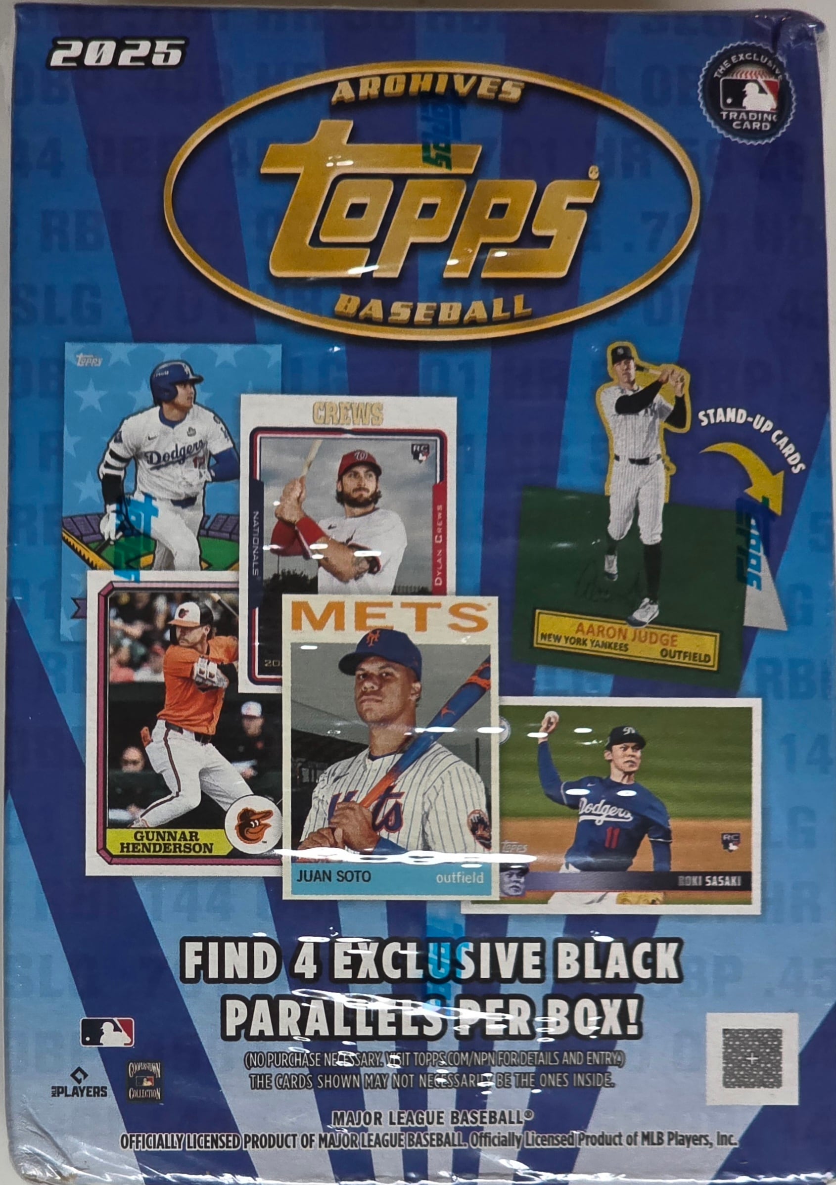 USA直輸入の2025 Topps Archives Baseball(リテール版ブラスター)は、ブランドニューボックスのまま手に入る“本場アメリカ仕様”の一箱。
